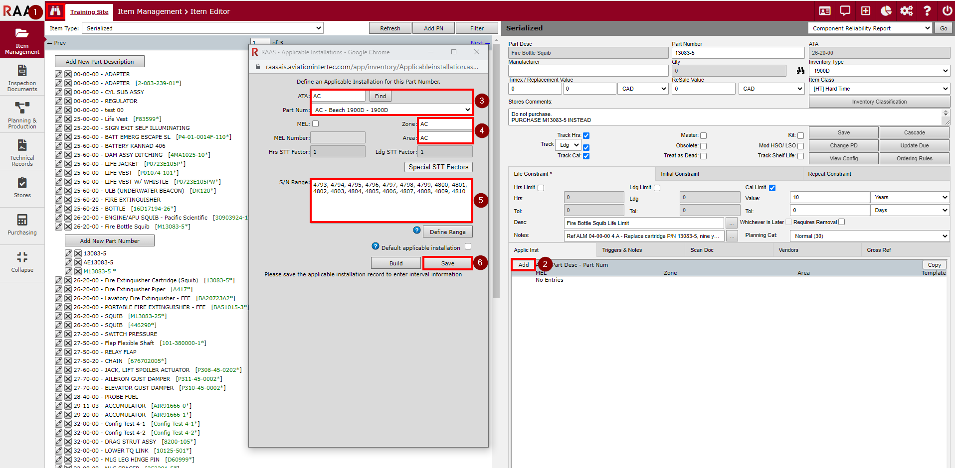 A part number's applicable installation tells RAAS not only which aircraft model a part number is applicable to, but also to which aircraft serial numbers in that aircraft model fleet a part number is applicable to.