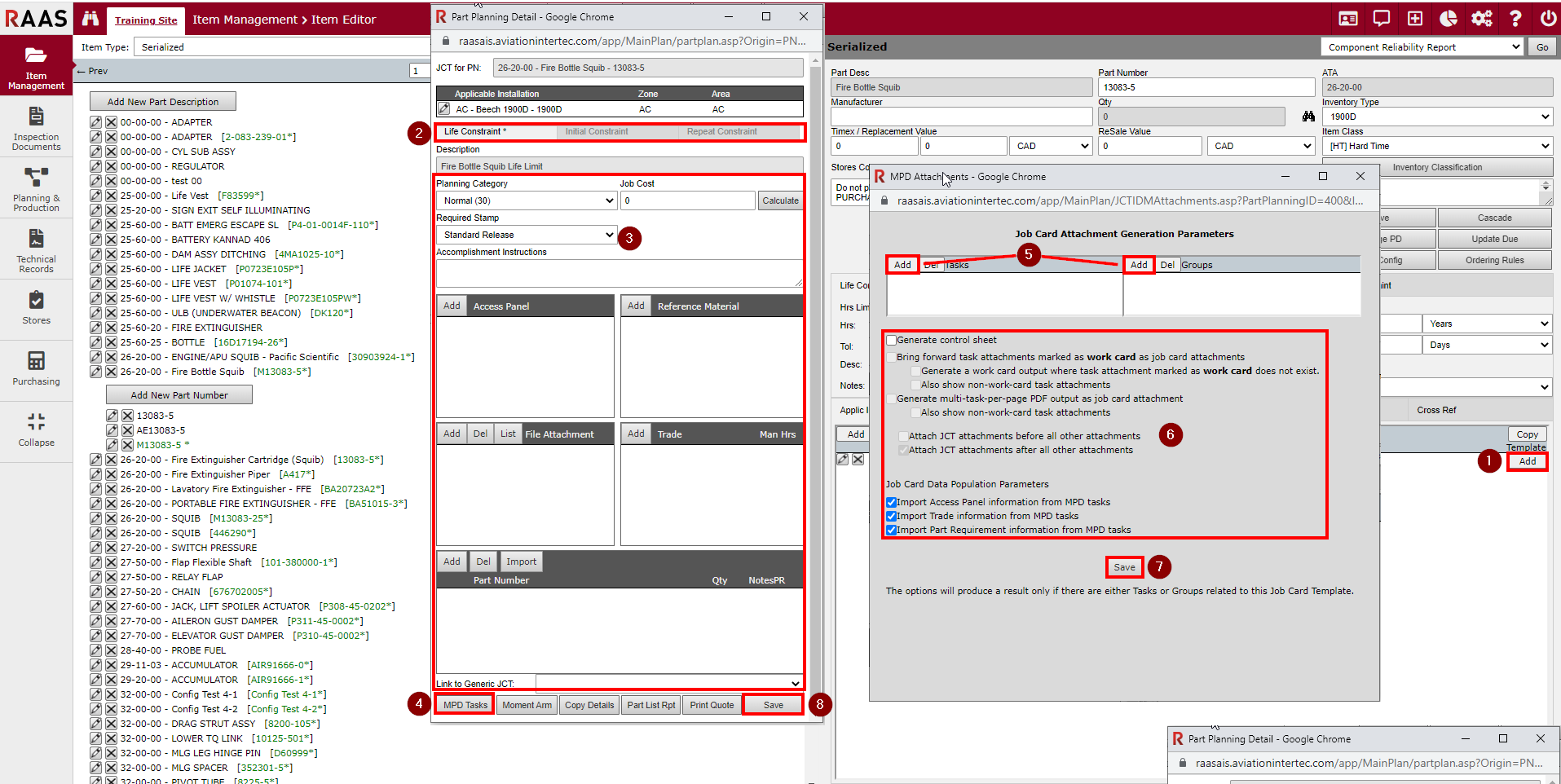 Creating a Job Card Template from the Part Number Applicable Installation Tab