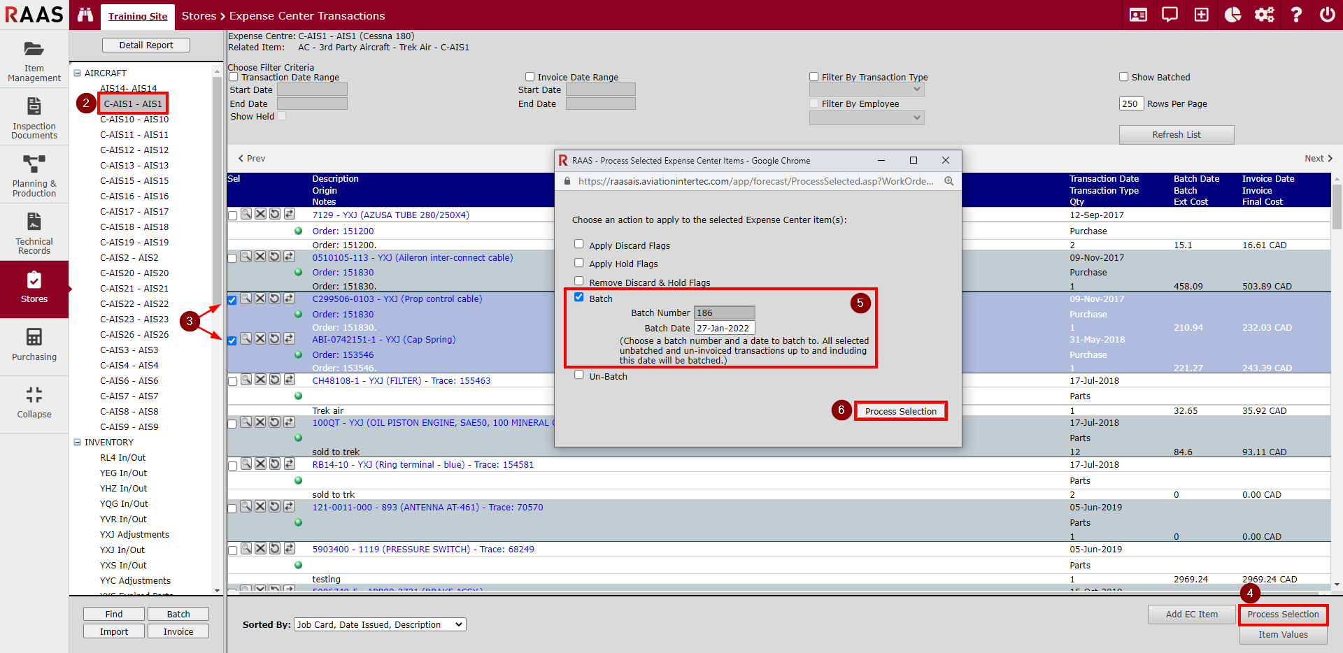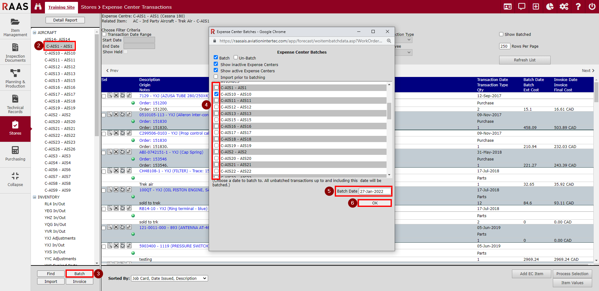 When there are imported Expense Center items that need to be batched separately, it is best to use the selection batching process. Using this method, only Expense Center Transactions from a single Expense Center can be batched at one time.
