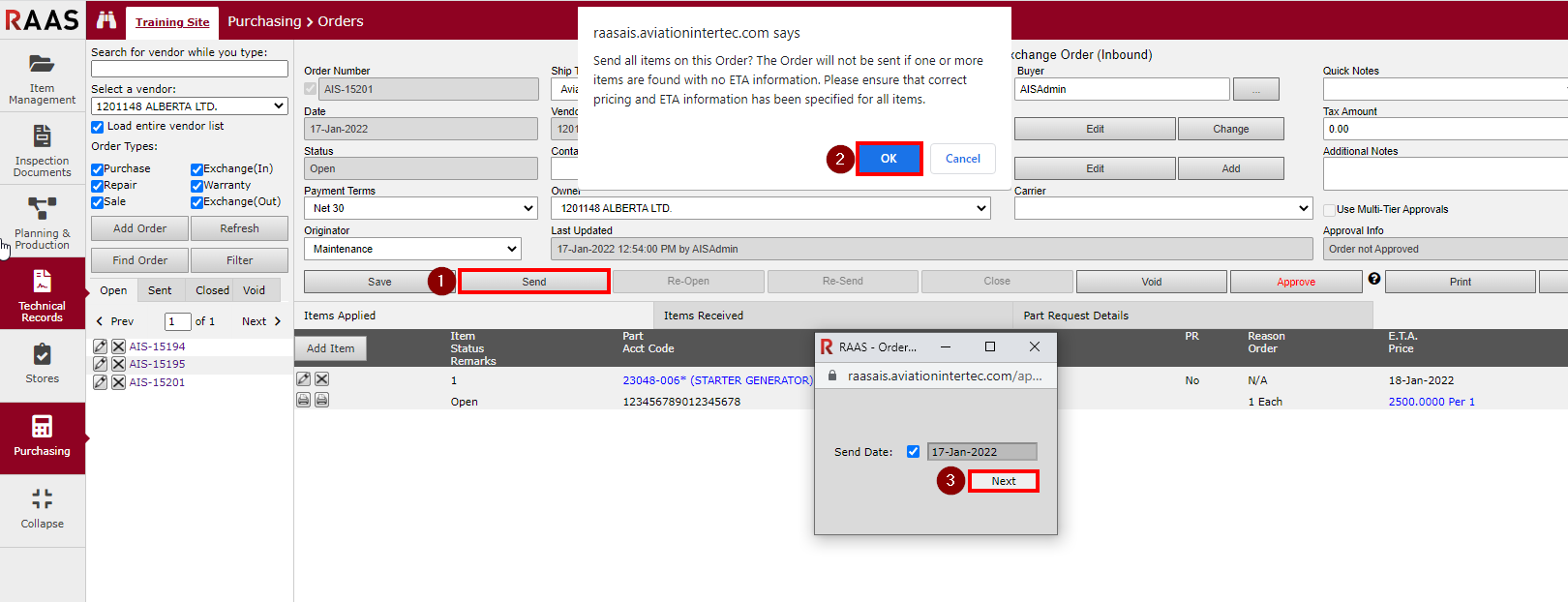 Enter a Send Date or click the checkbox to enter the current date and click Next.