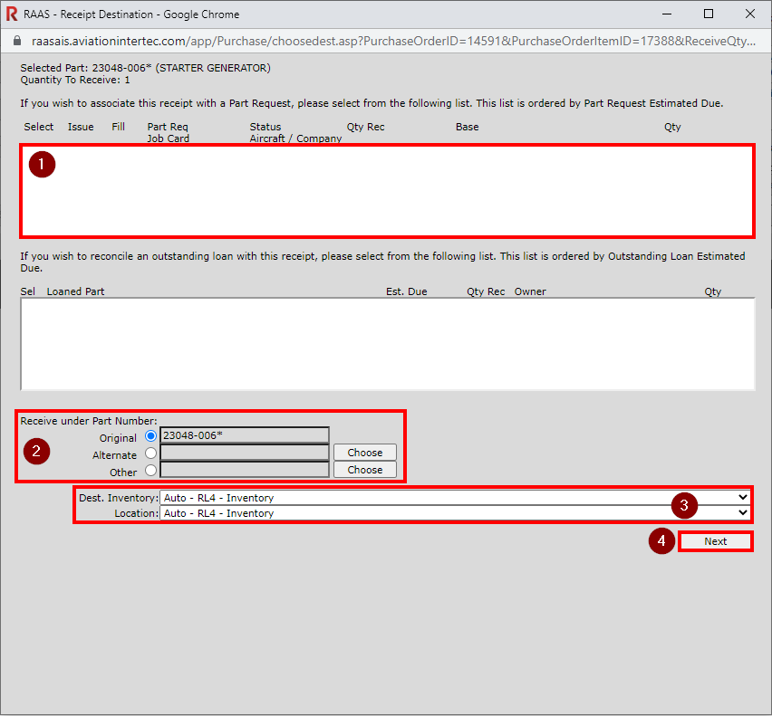 Note: If the Part Number does not exist in RAAS yet, you must add it first and then come back to receive the part.