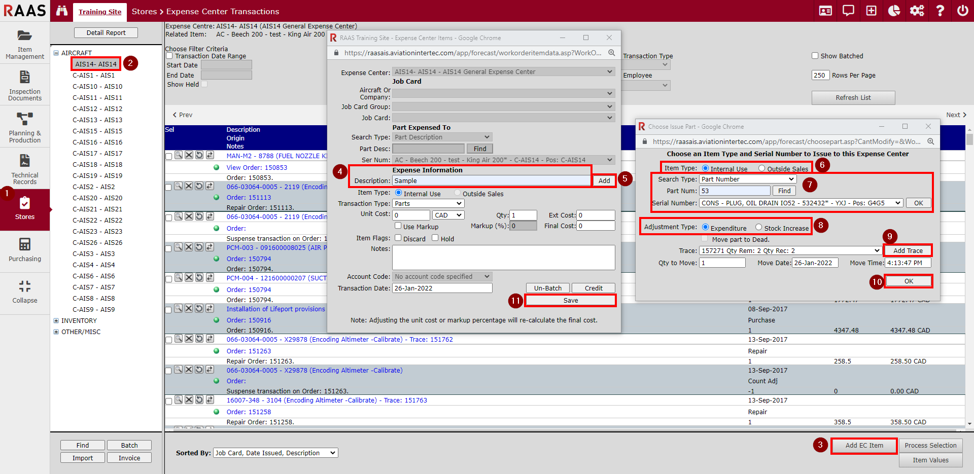 By processing Traces on the Stores – Expired Parts List page