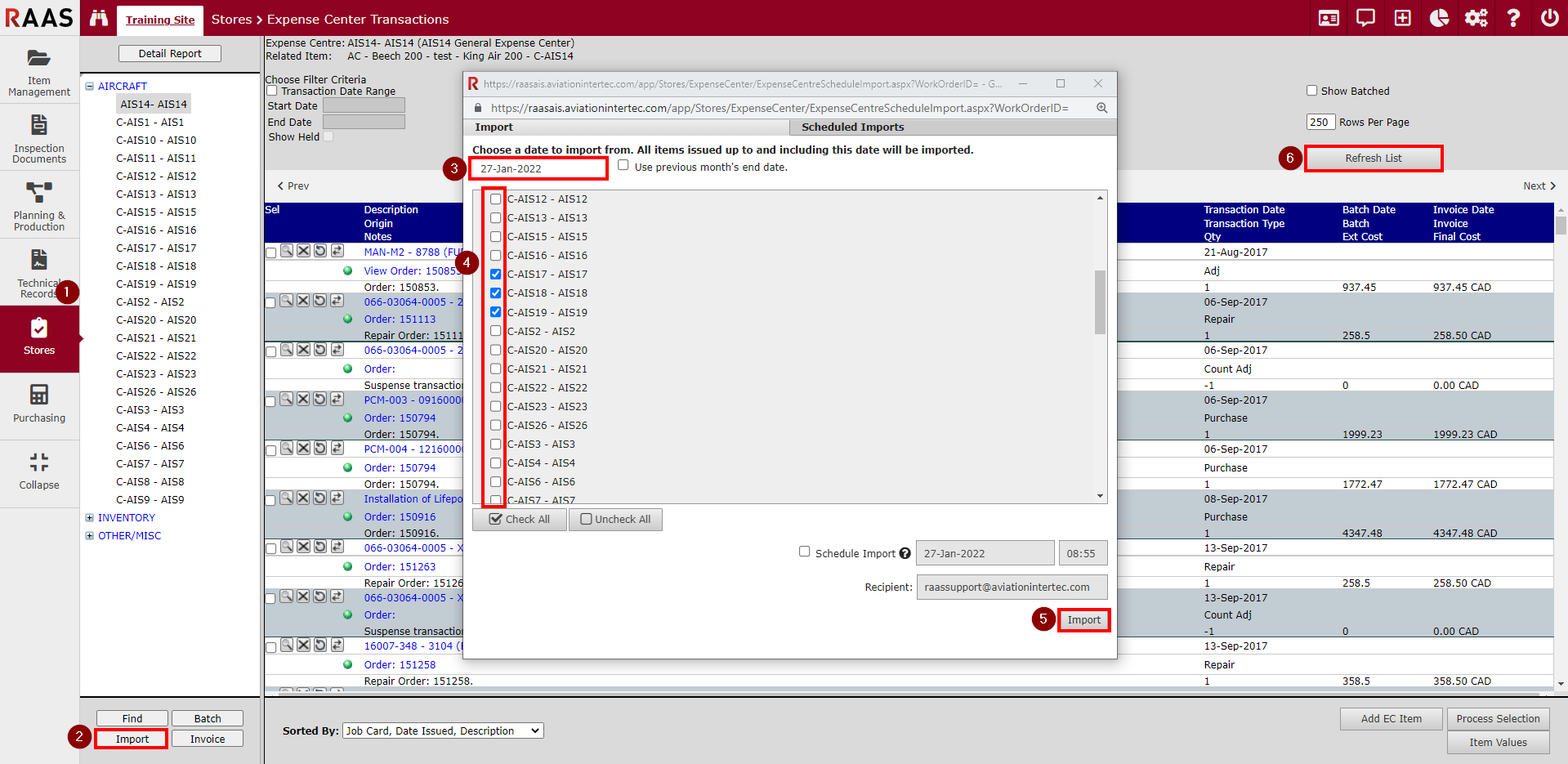 Enter an import date. All items up to and including this date will be imported for the selected expense center(s).