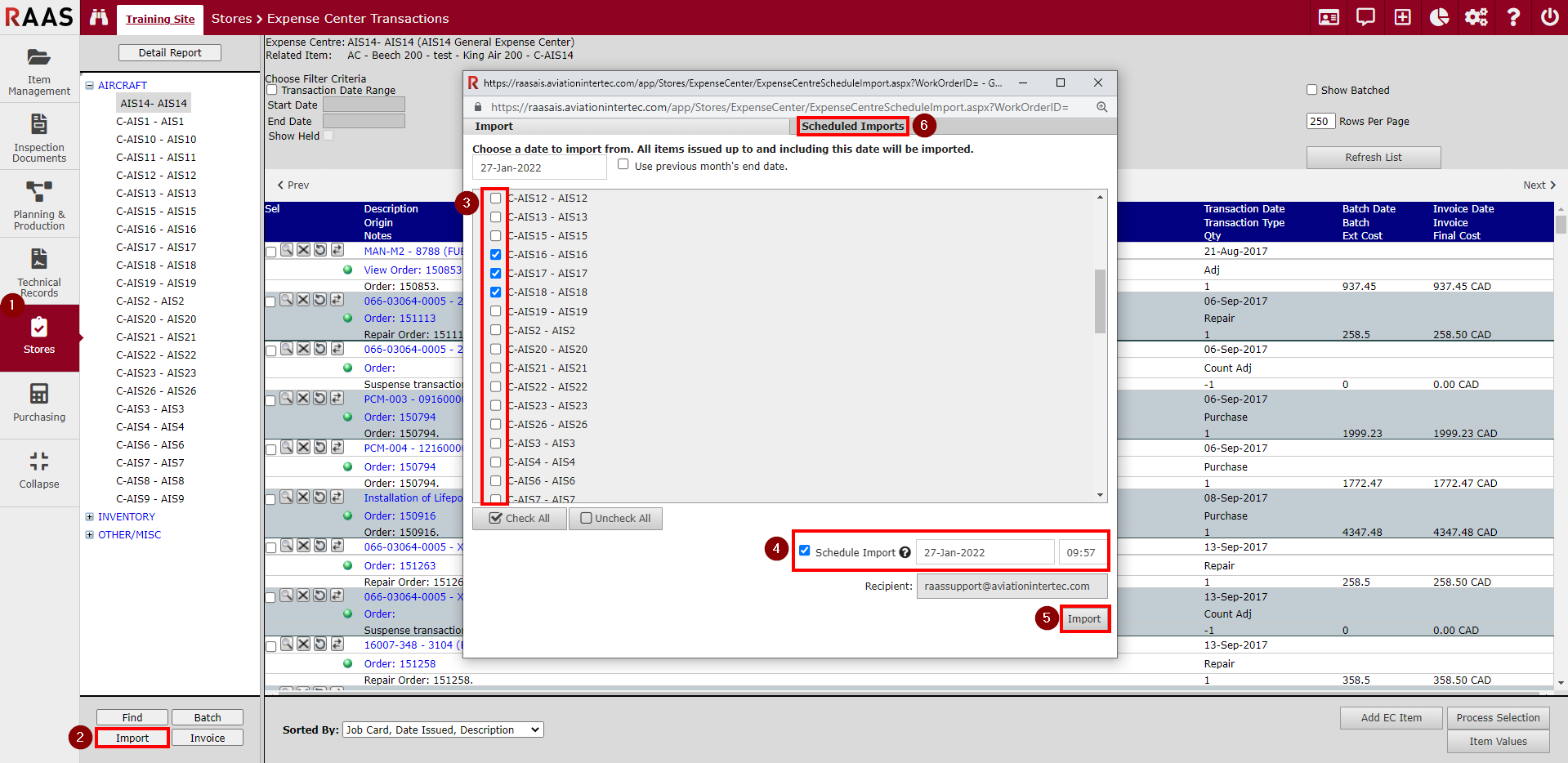 Select the Expense Centers from the list that you wish to schedule the Import for.