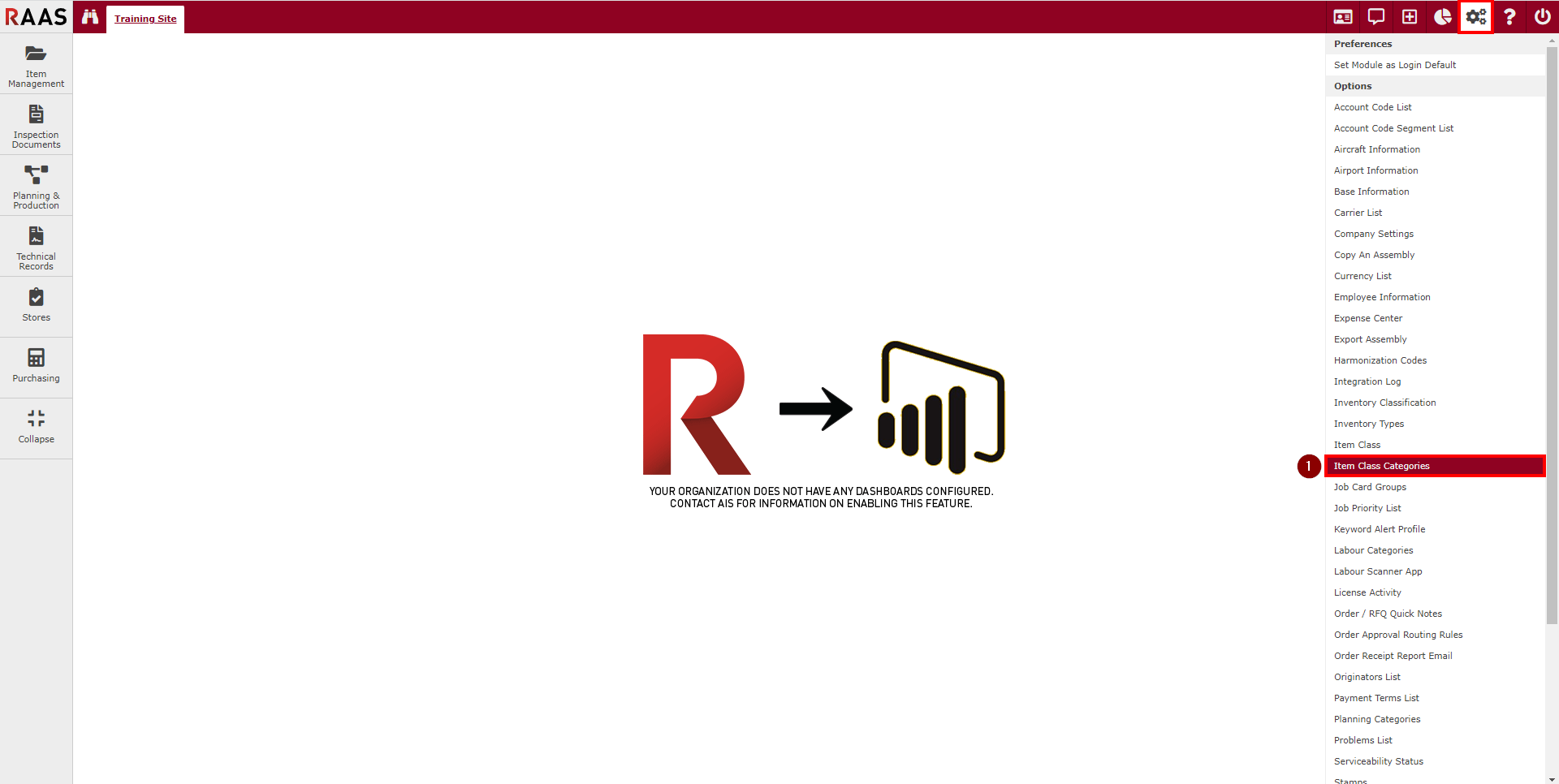 Click on the gears icon in the top right corner to open Settings and select Item Class Categories.