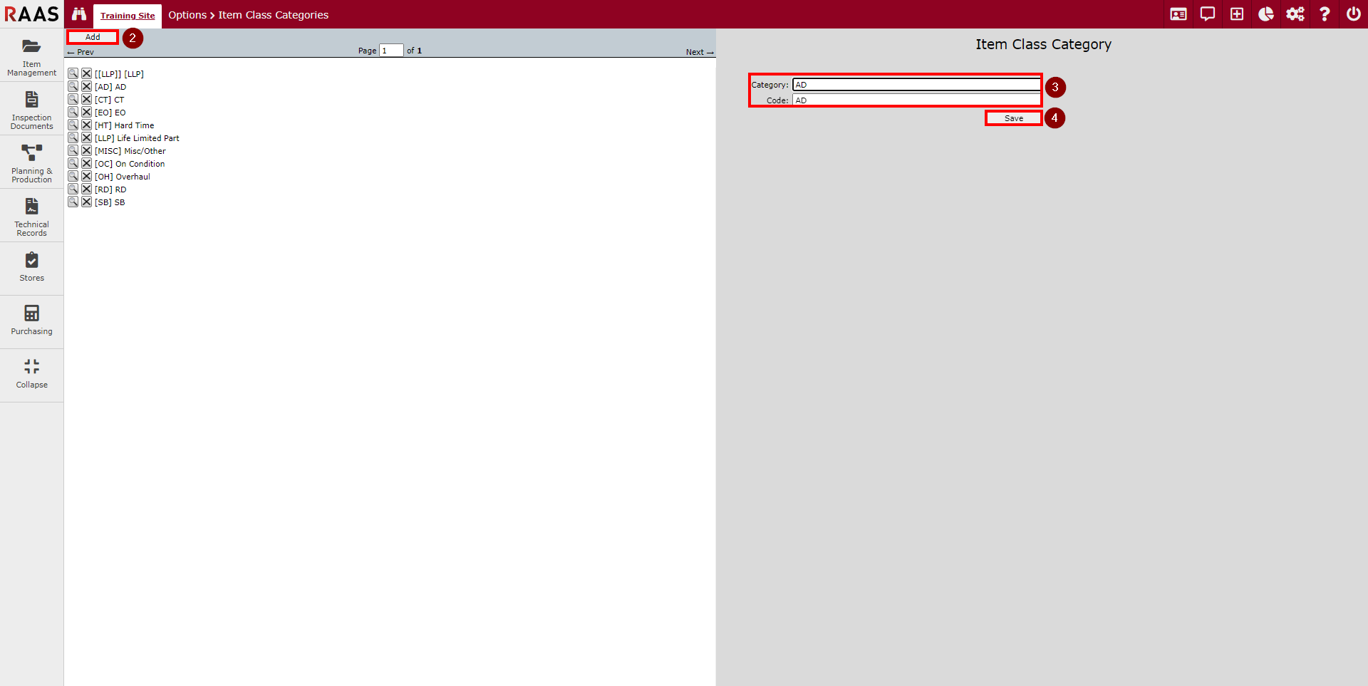 A user must add an Item Class Category before creating an Item Class. Item Classes are primarily used for filtering Delivery & Status Reports and Assembly Reporting in Item Management.