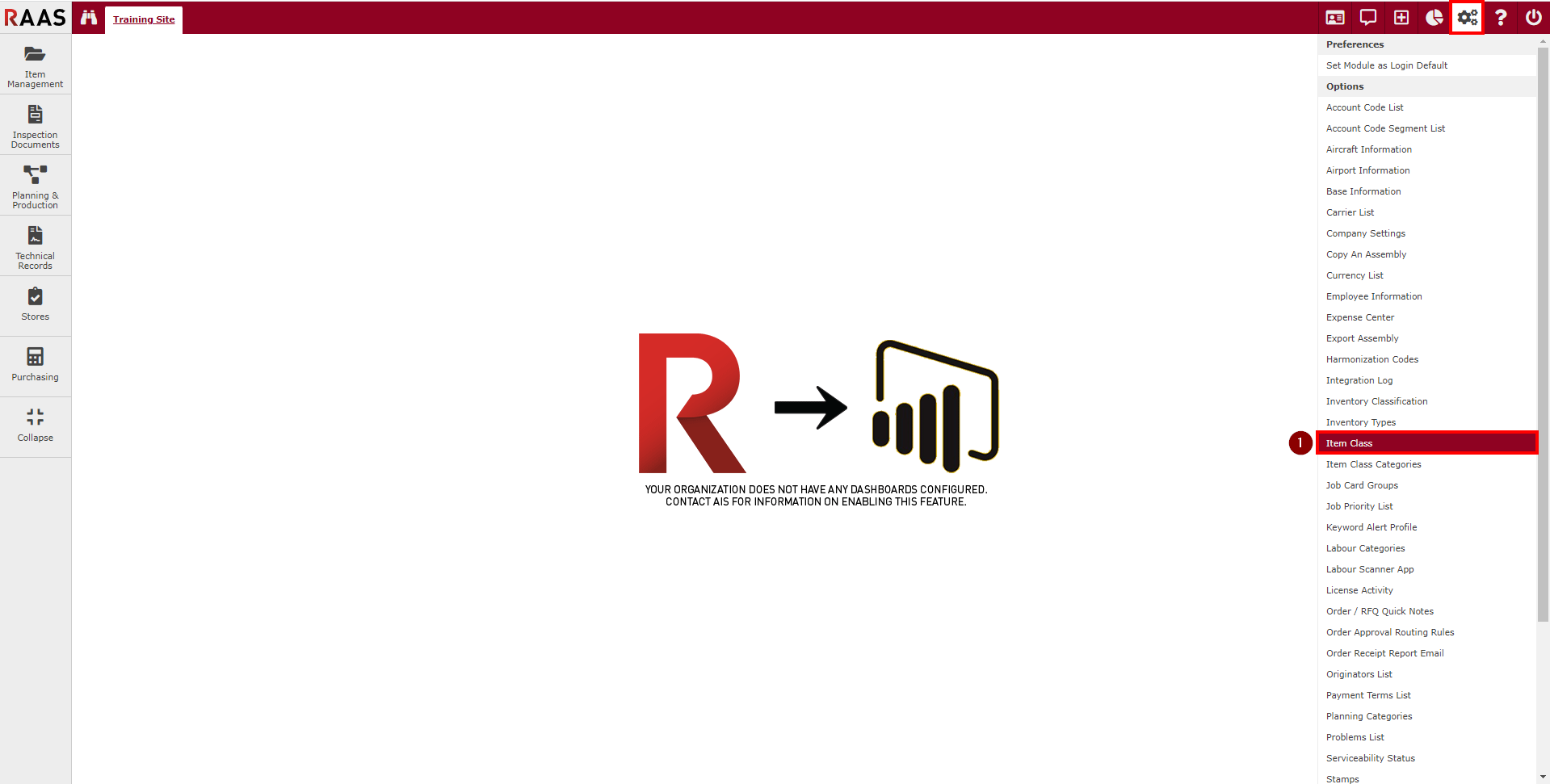 Click on the gears icon in the top right corner to open Settings and select Item Class.