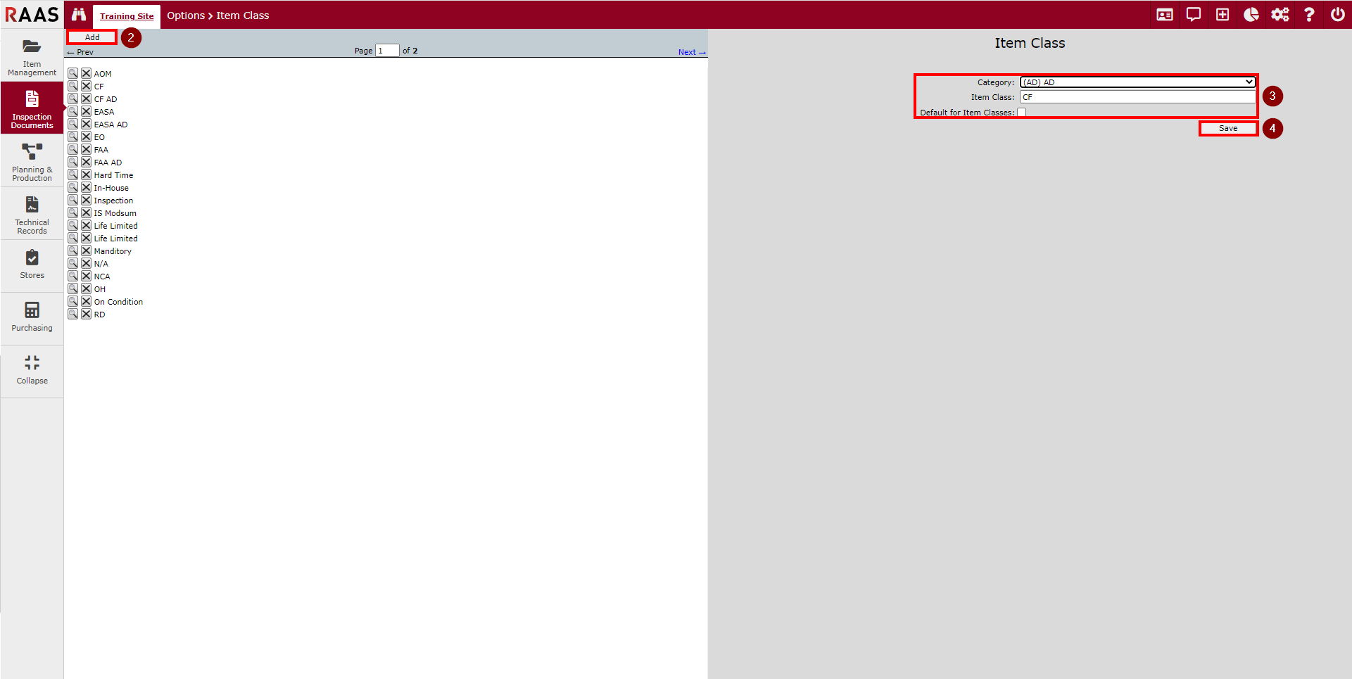 Figure 2: Adding an Item Class Category