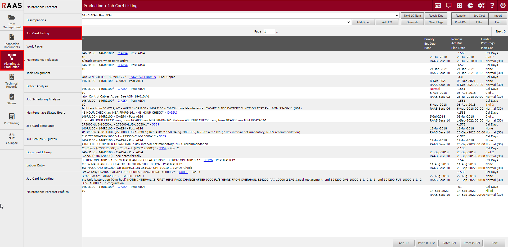 The Job Card Listing has numerous features that include the use of Job Card Groups to organize Job Cards by Company Job Card categories and to separate Line Maintenance from Heavy Maintenance.