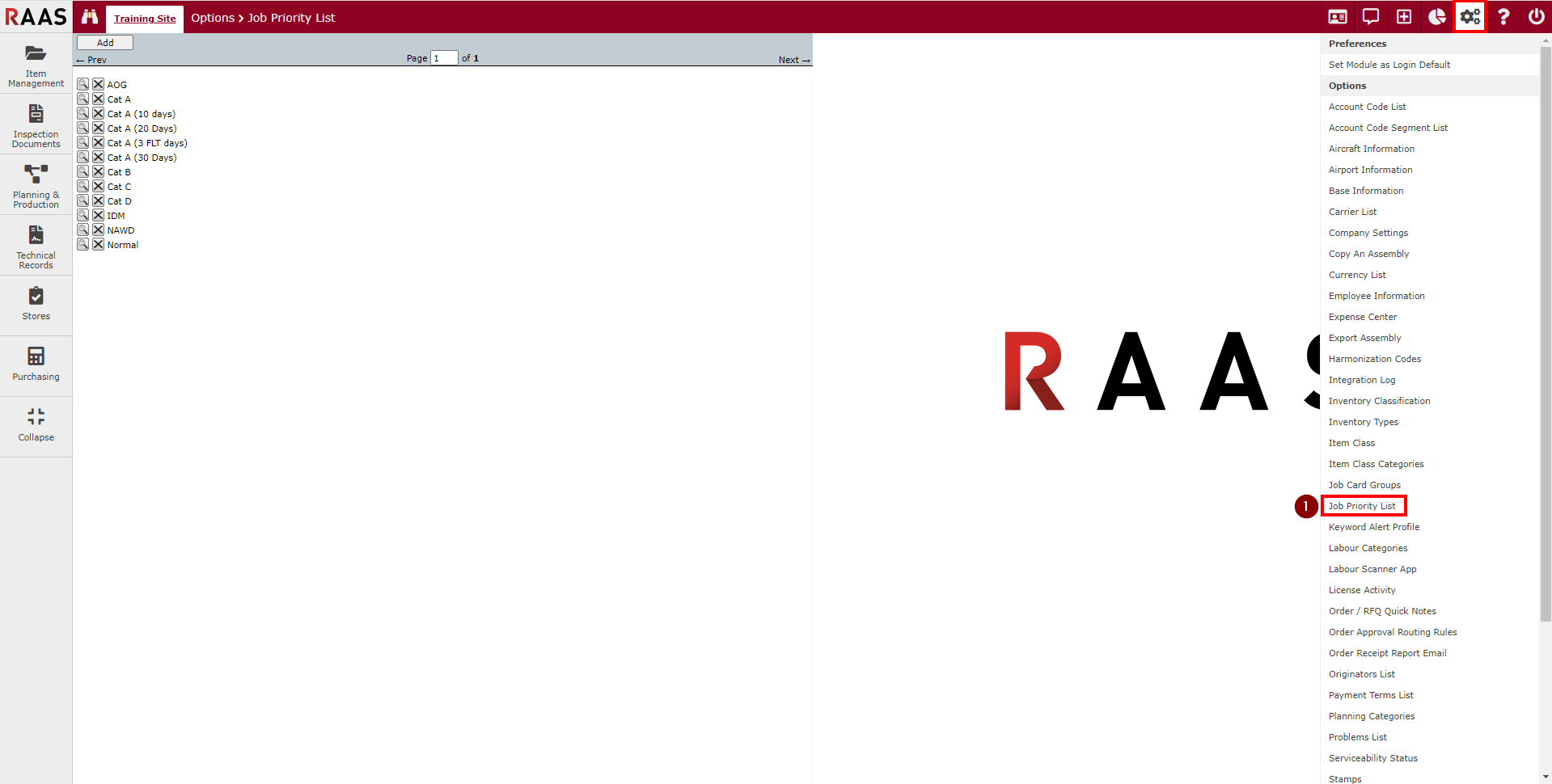 Click on the Settings menu and select Job Priority List.