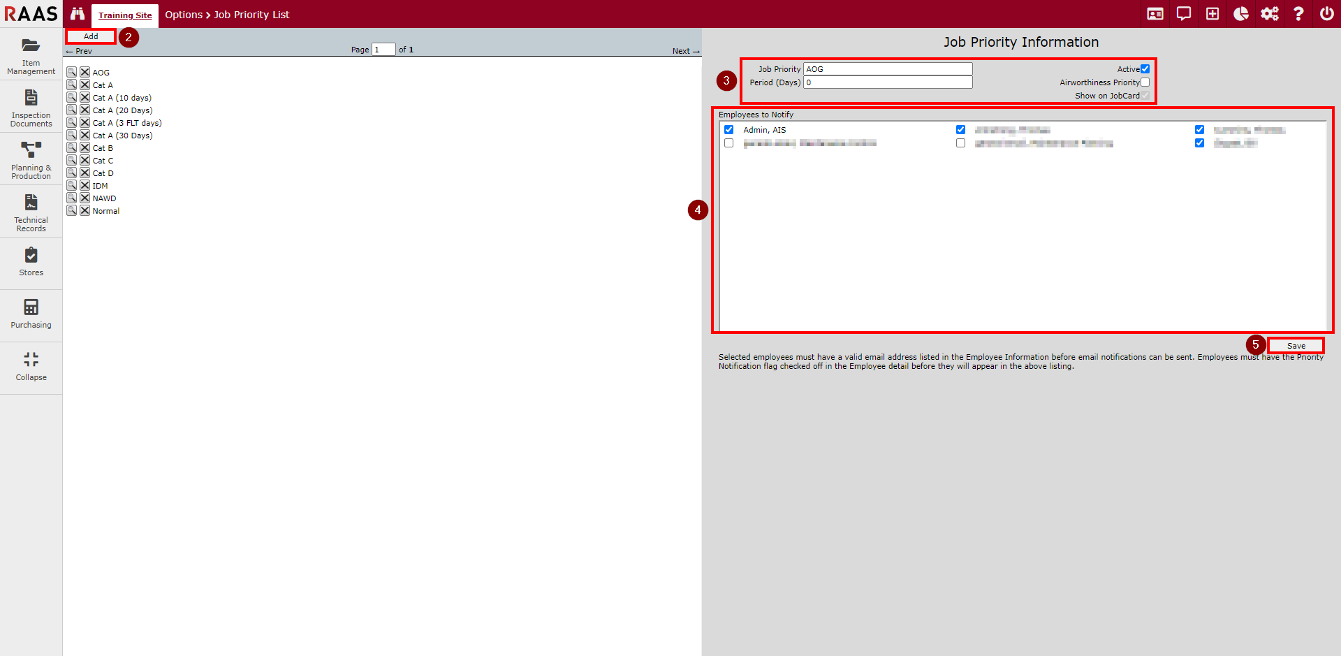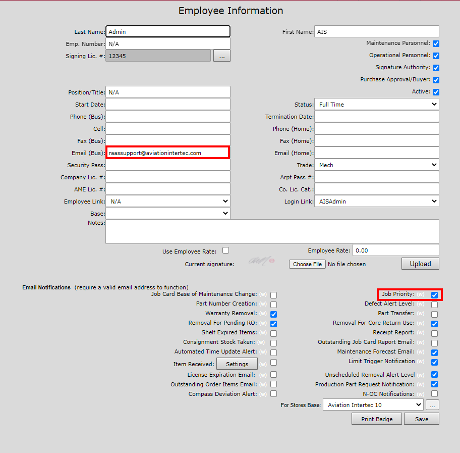 Note: Selected employees must have a valid email address listed in the Employee Information before email notifications can be sent. Employees must also have the Priority Notification flag checked off in the Employee detail before they will appear in the above listing.