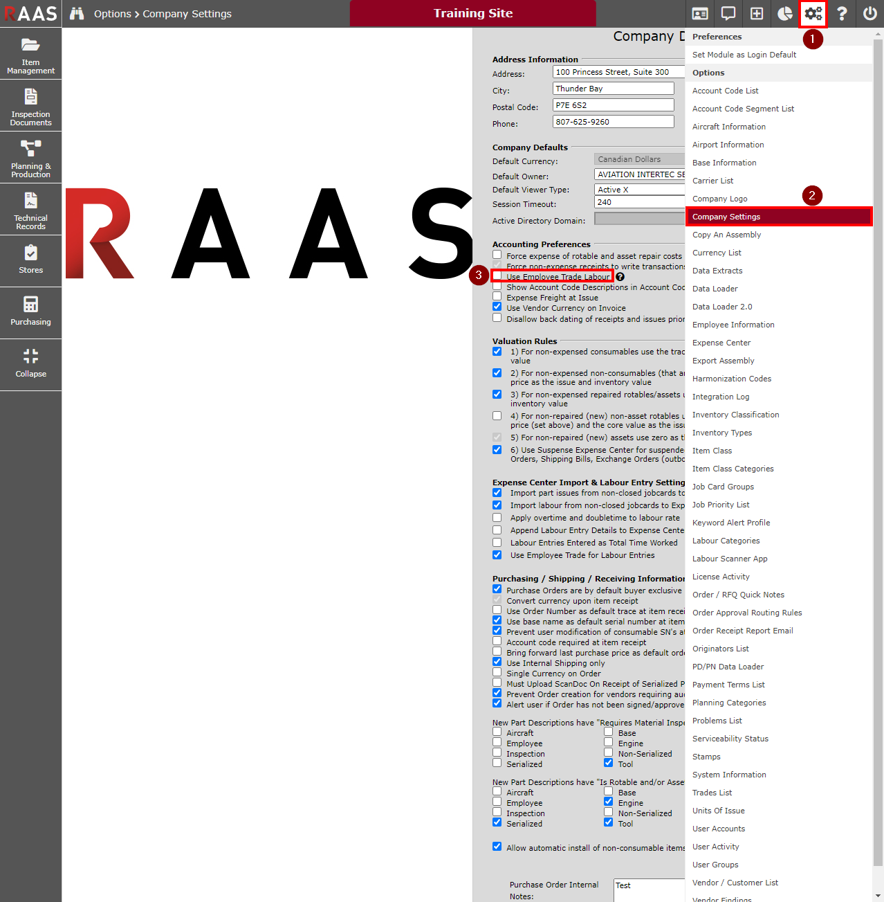 Figure 4: Required Company Settings to Add Labour via Job Cards