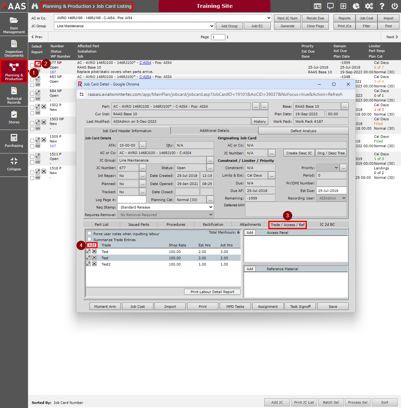 Adding Labour Hours to a Job Card