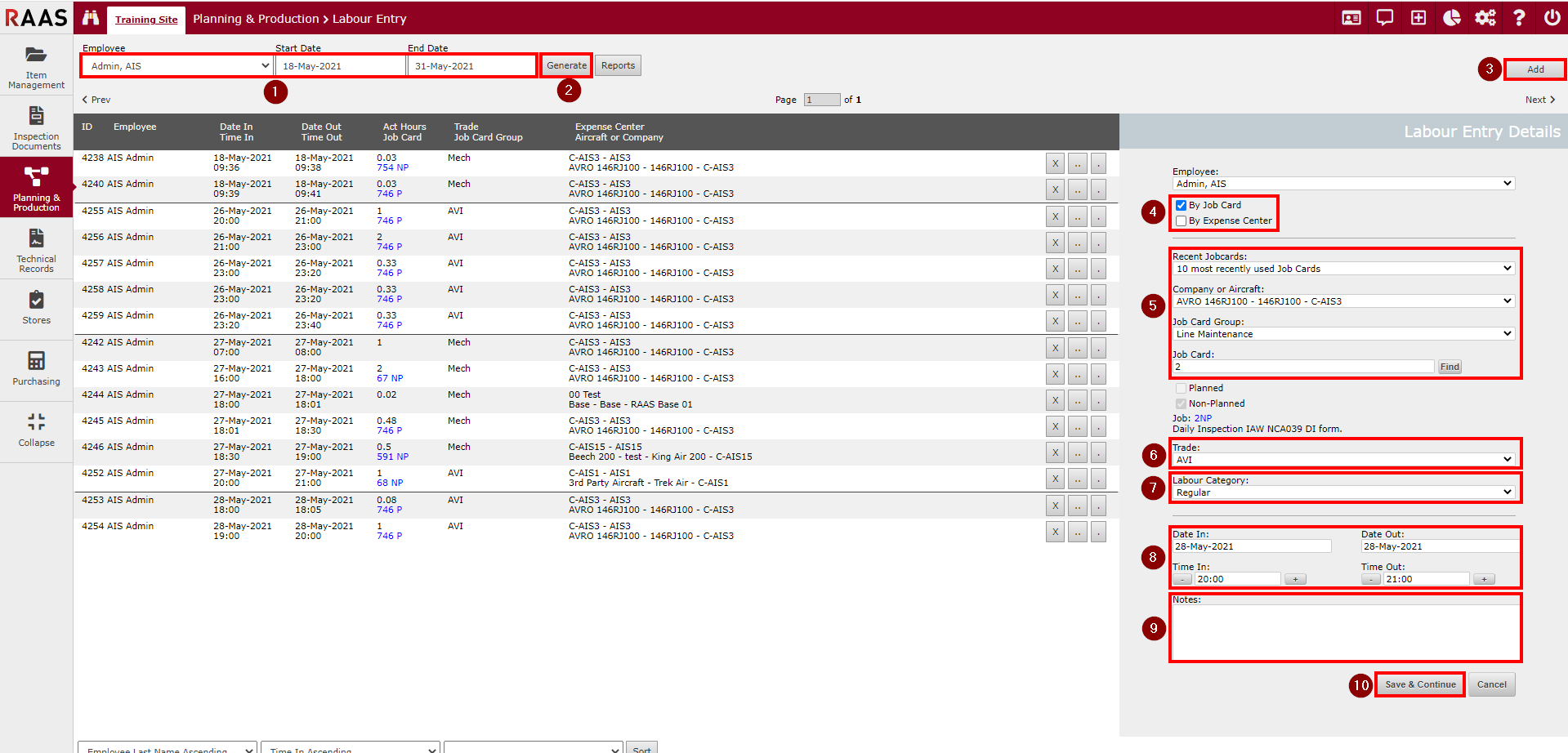 Figure 3: Generating Labour Entries