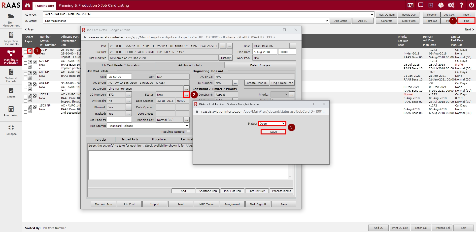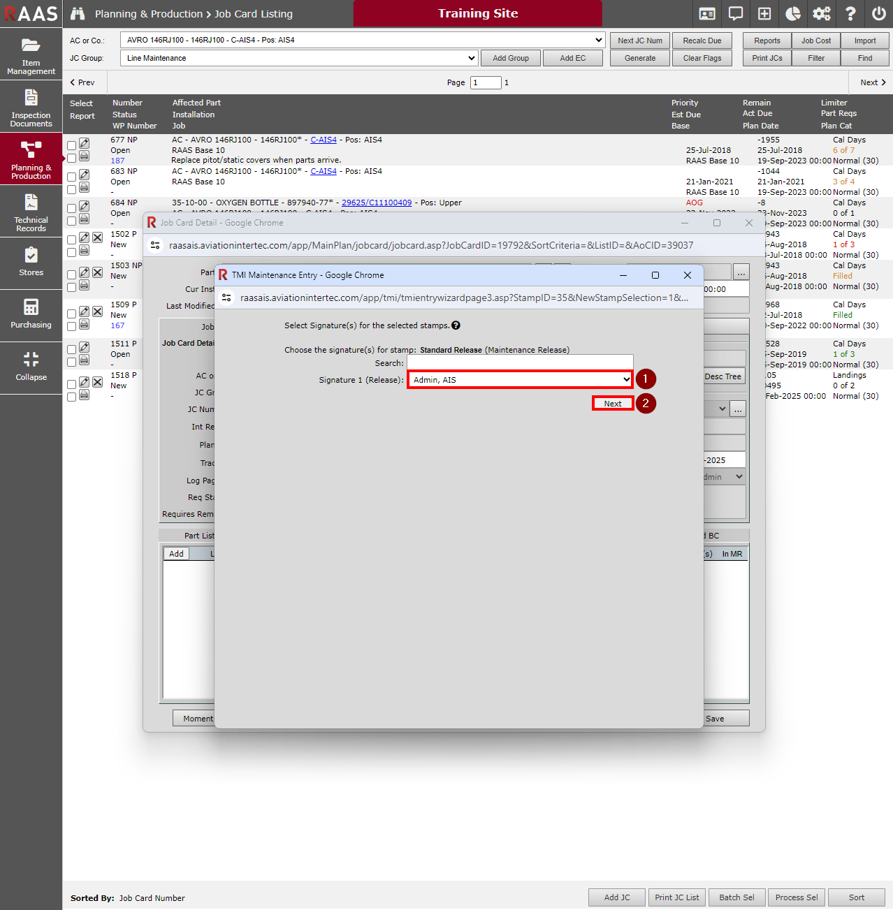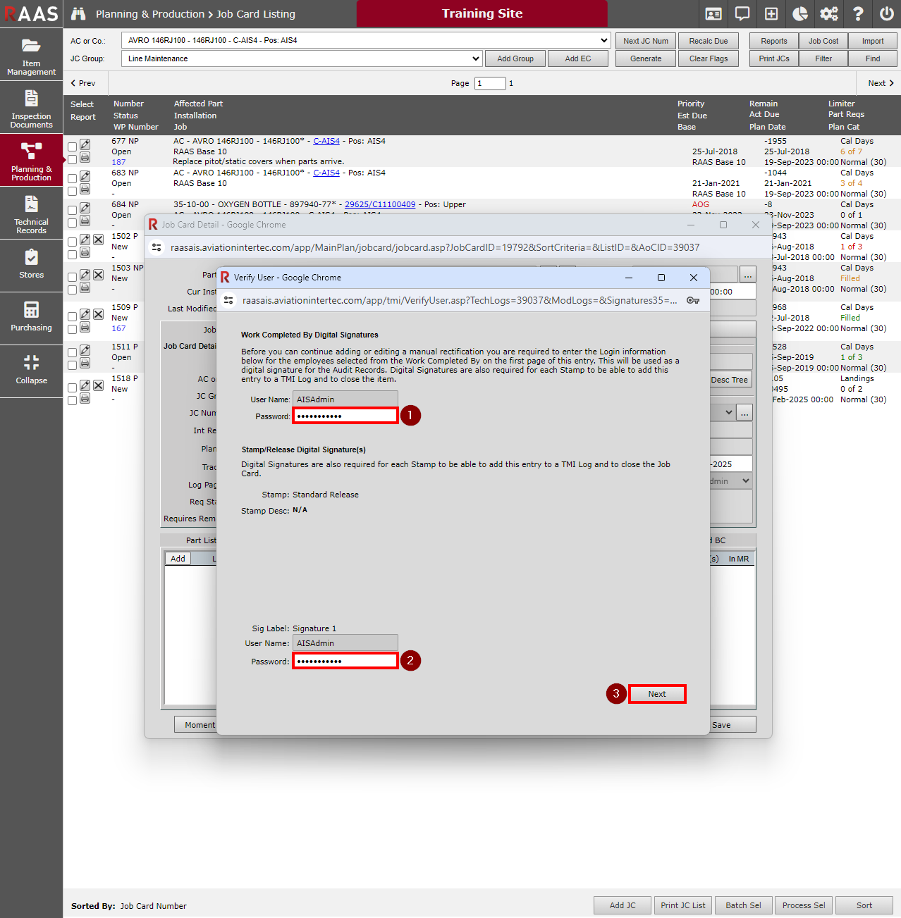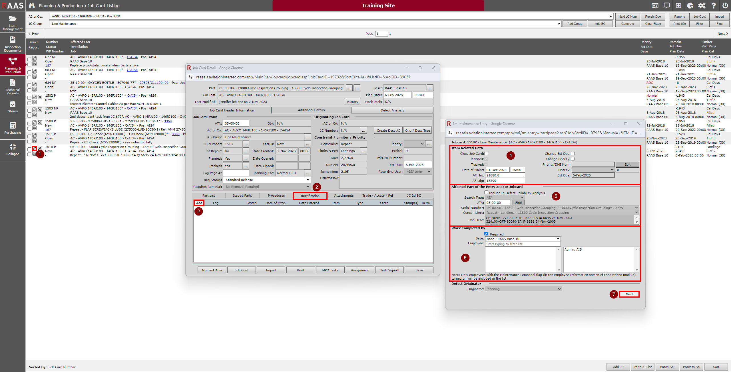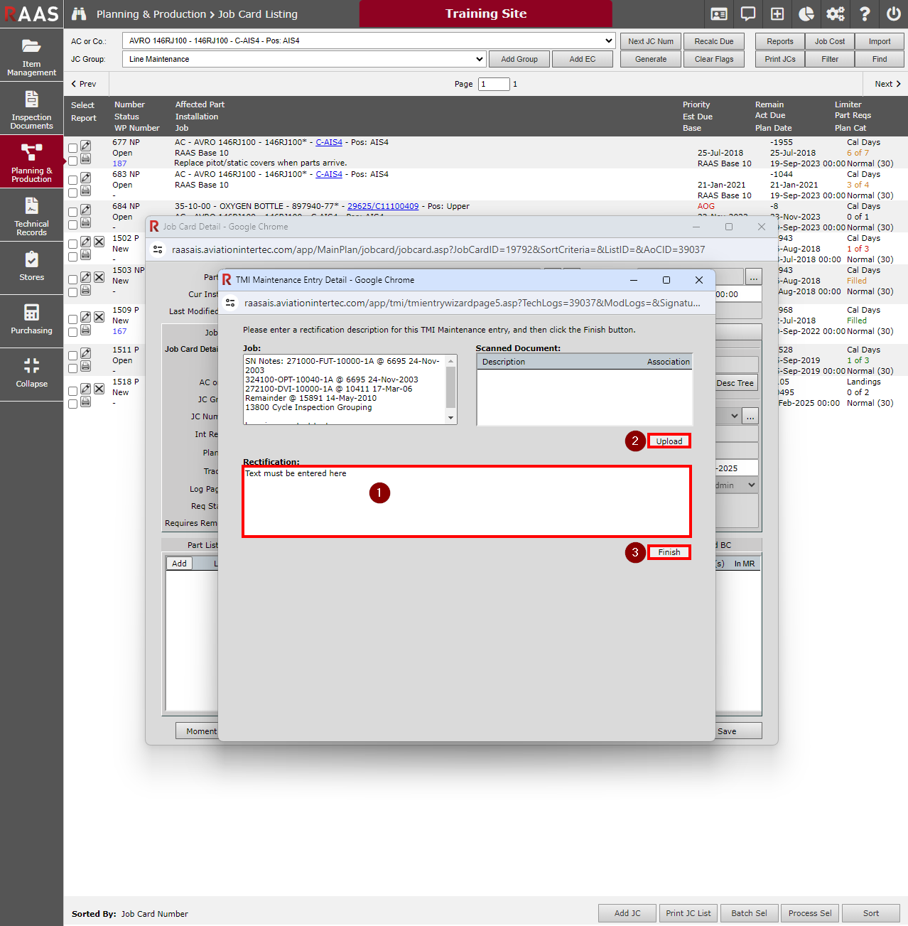 Often referred to as Manual or Line Level Rectifications (LLR), Rectifications are used when maintenance details are being entered directly on the electronic Job Card in RAAS to indicate completion of required tasks. They may be used to supplement or replace a paper process of writing out and signing accomplished work.