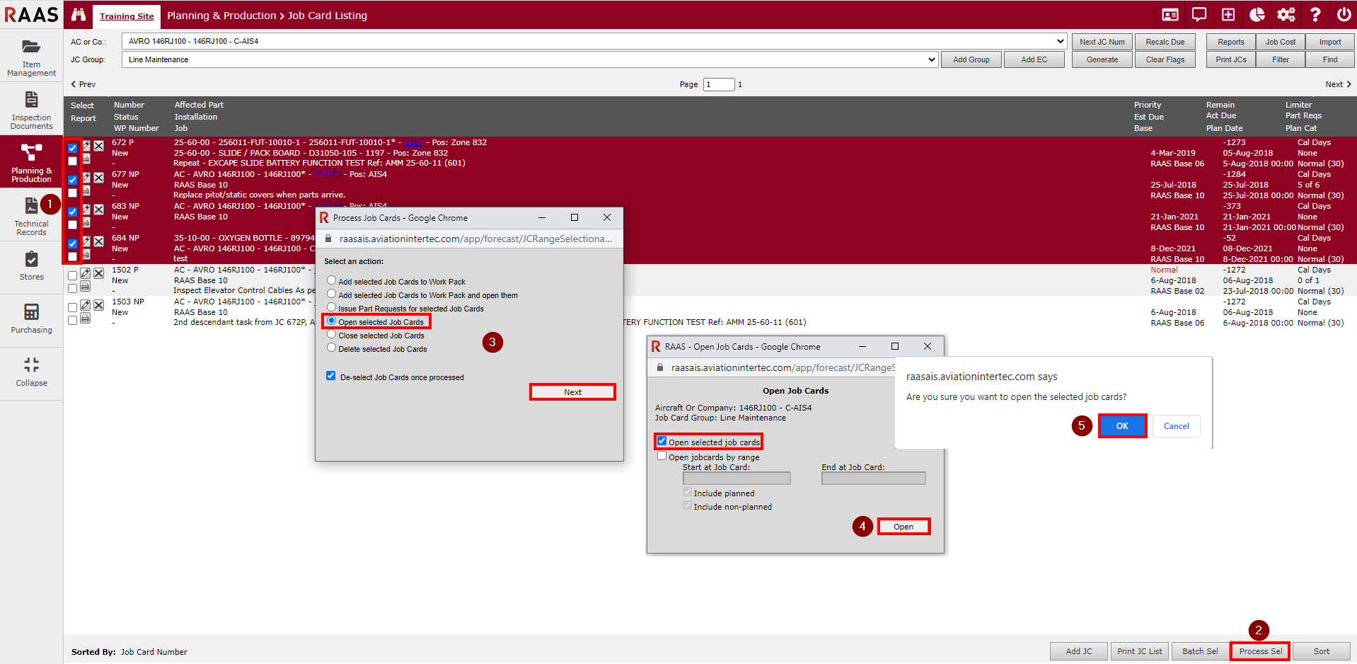 Select the Open selected Job Cards action and click Next.