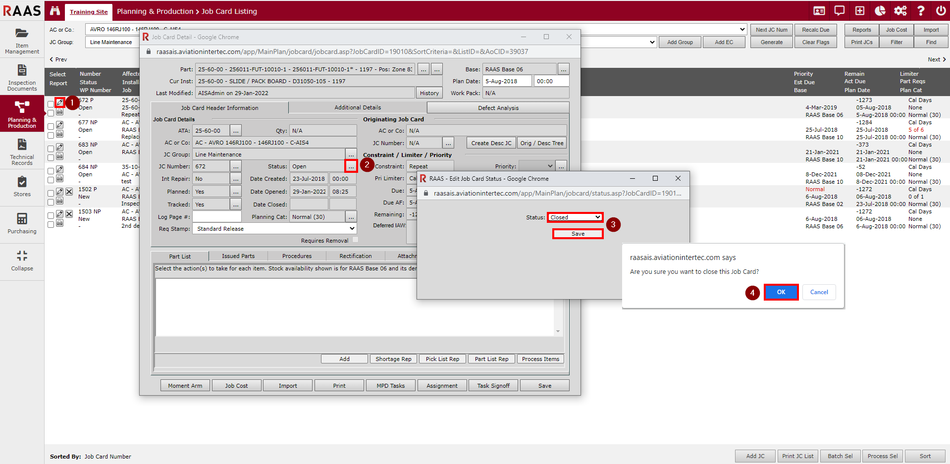 Figure 3: Closing a Job Card