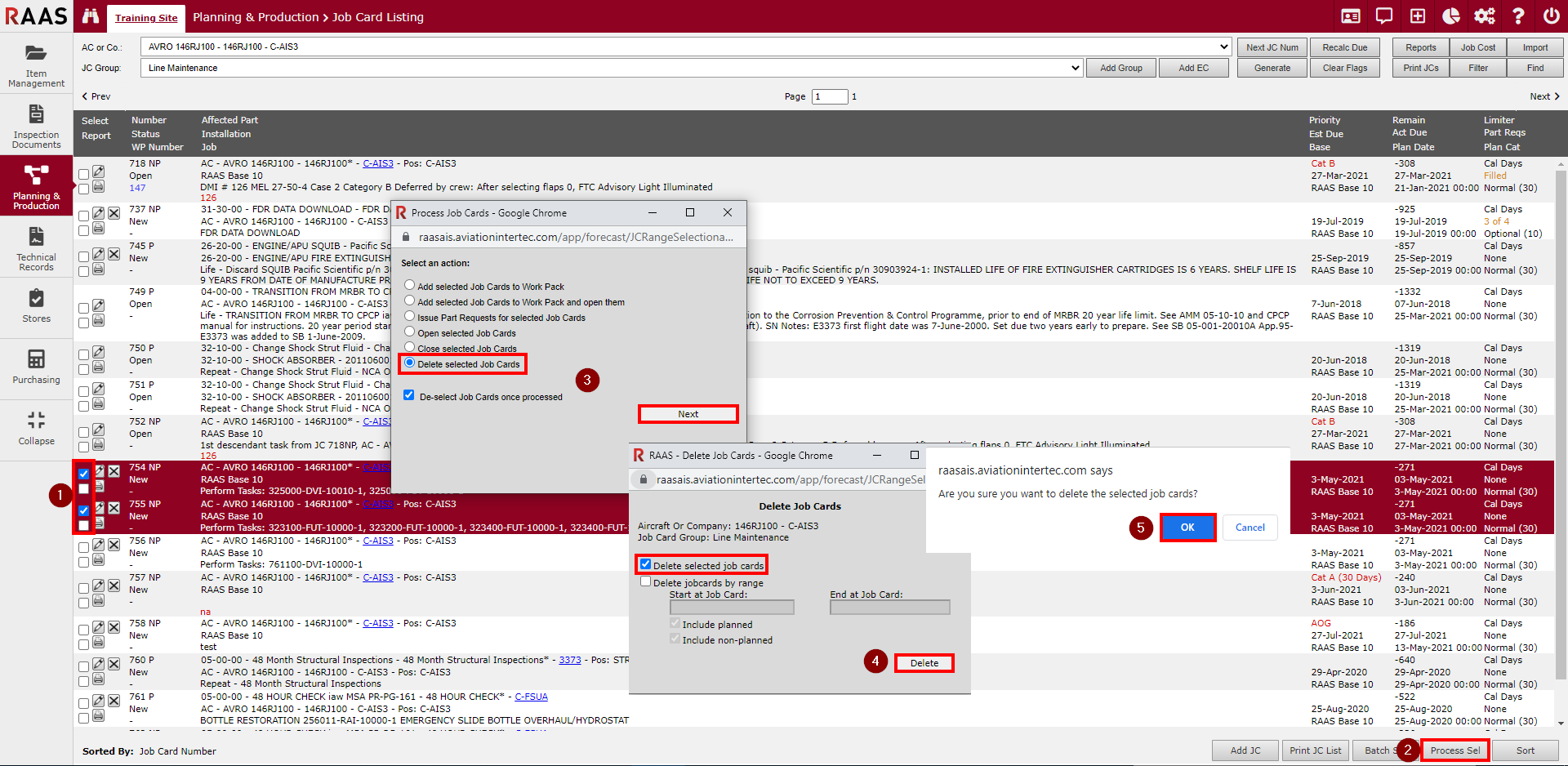 Figure 12: Deleting Multiple Job Cards