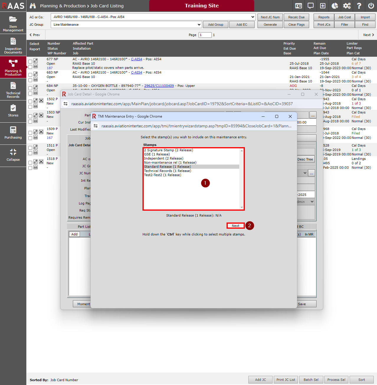 Select the applicable Aircraft or Company and Job Card Group.
