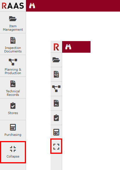 RAAS is made up of two main navigation segments: the main module bar on the left and a quick access toolbar at the top right.