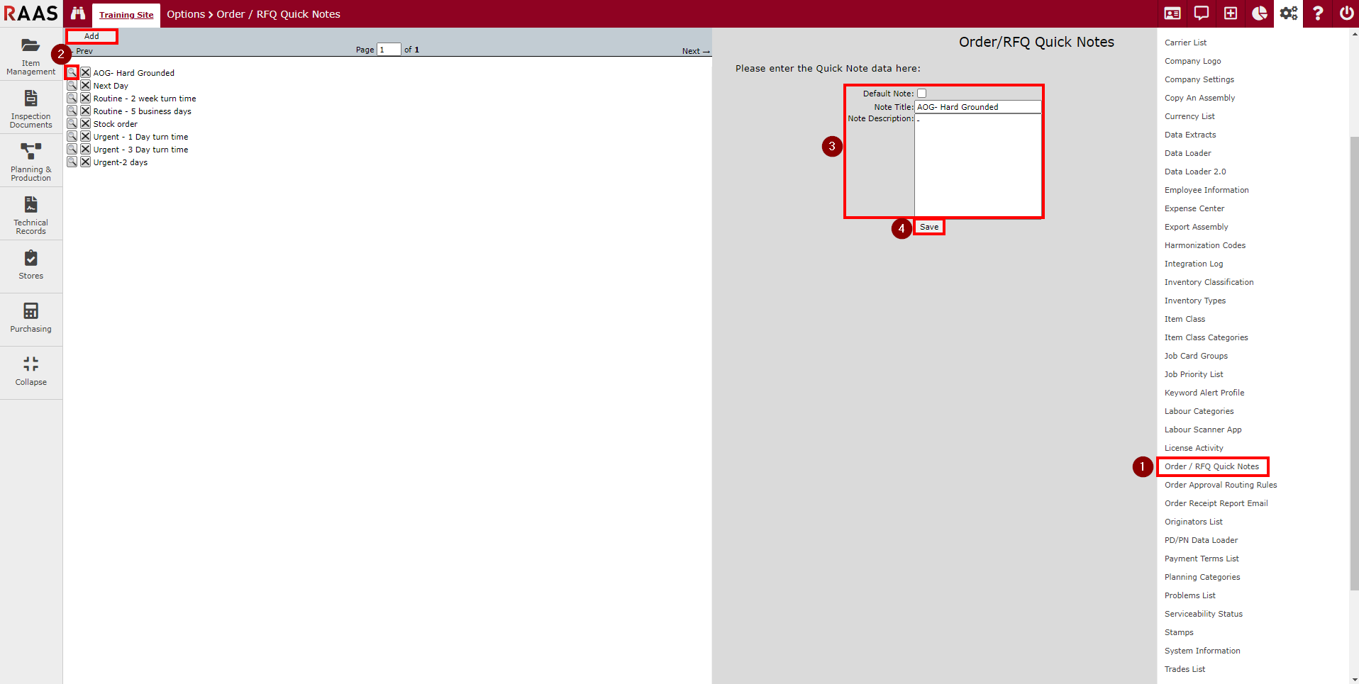 Figure 1: Order/RFQ Quick Notes