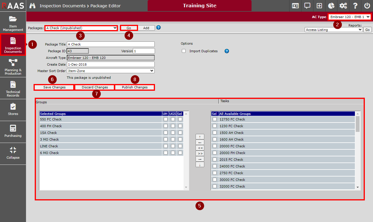 The Package Editor sub-module in Inspection Documents allows users to collect individual tasks and groups into a package. They do not require a tracking serial number in item management and can be imported directly into the Job Card Listing using the IDM Internal Import function.