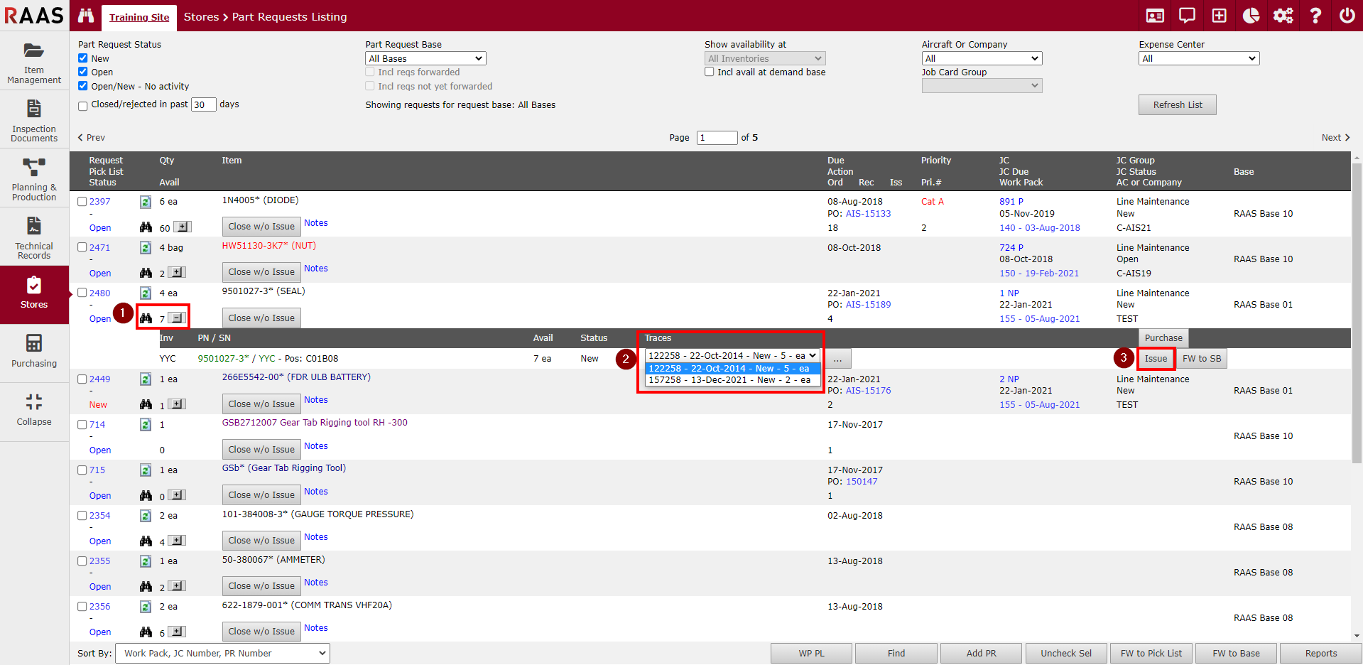 If your company uses the RAAS Part Requests System, then the Part Requests Listing is the best screen on which to perform the task of issuing parts.