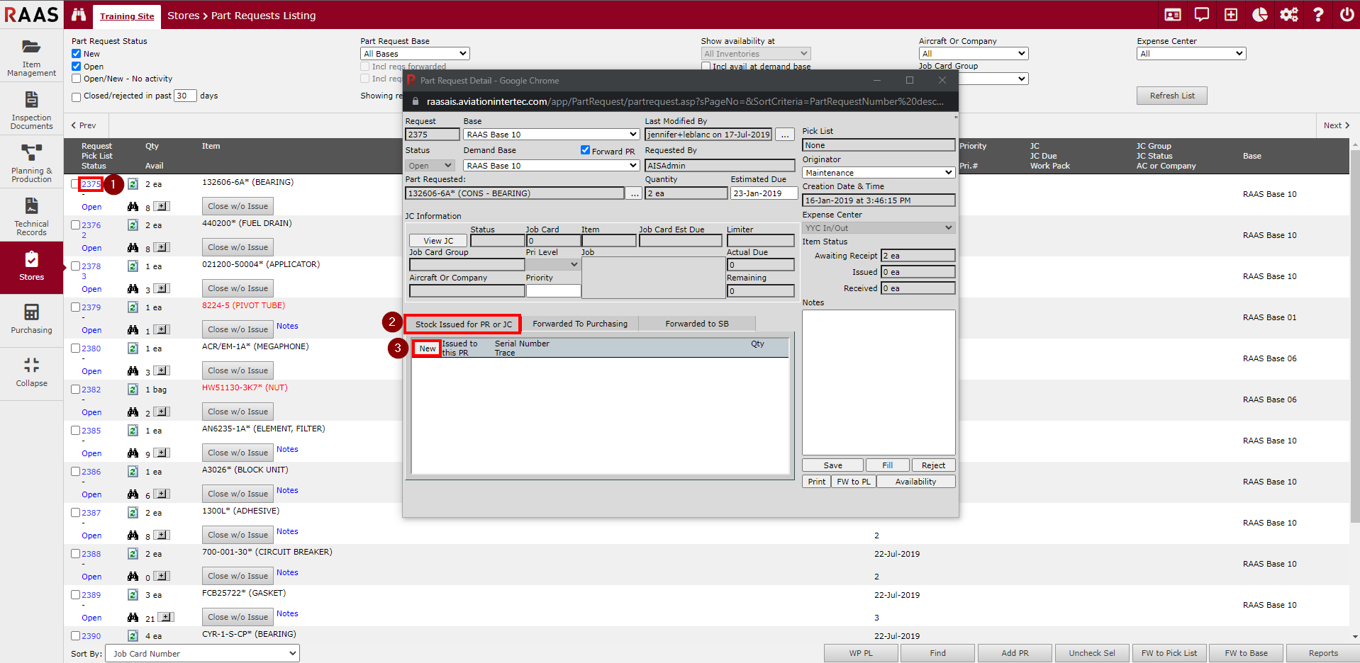 Stores – Part Requests Listing