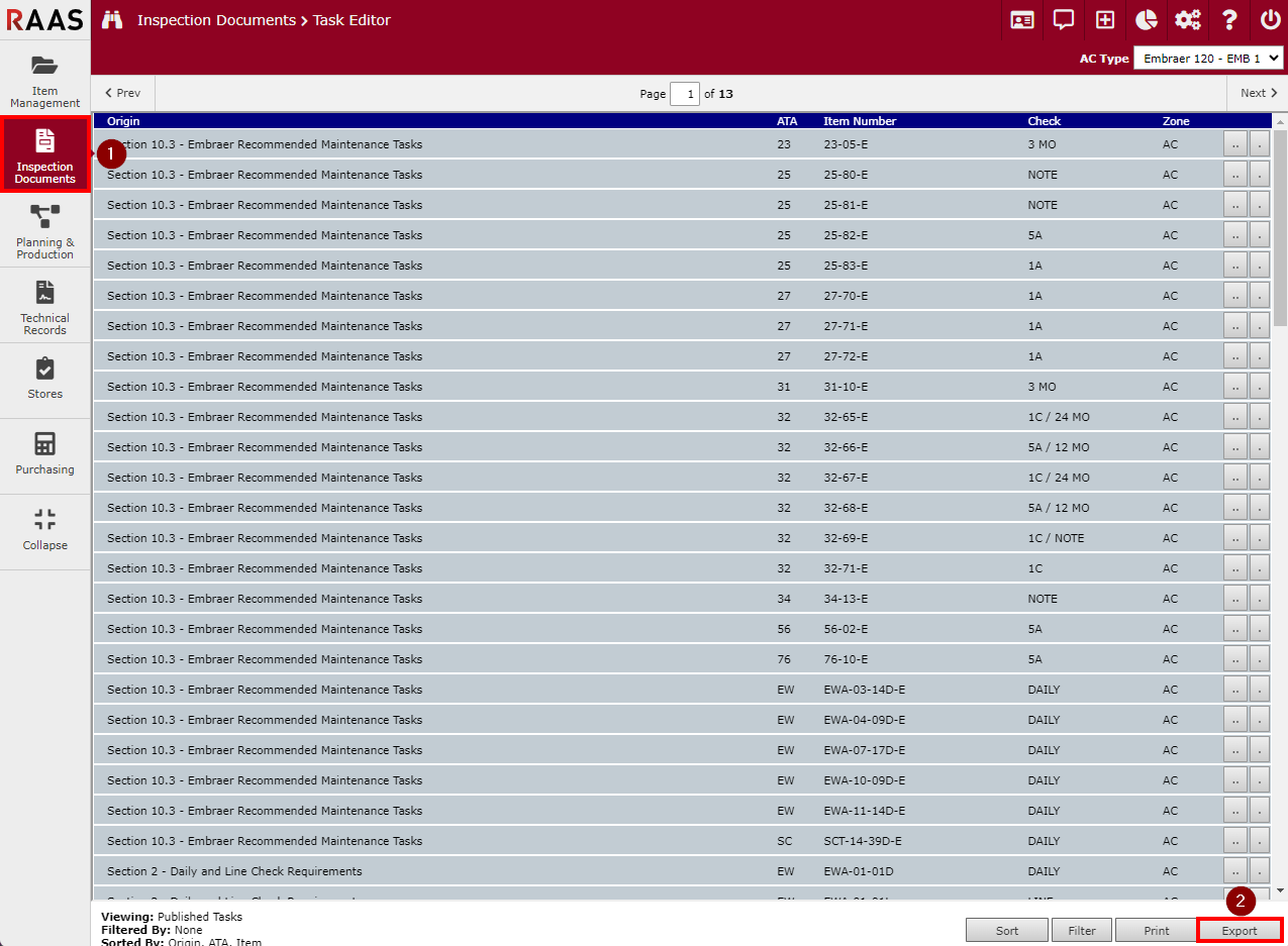 The Inspection Documents Task Editor is where tasks - MPD or other - can be added and revised. In order to add or revise tasks, the Inspection Documents module must be in Edit Mode. See Inspection Documents - Utilities.