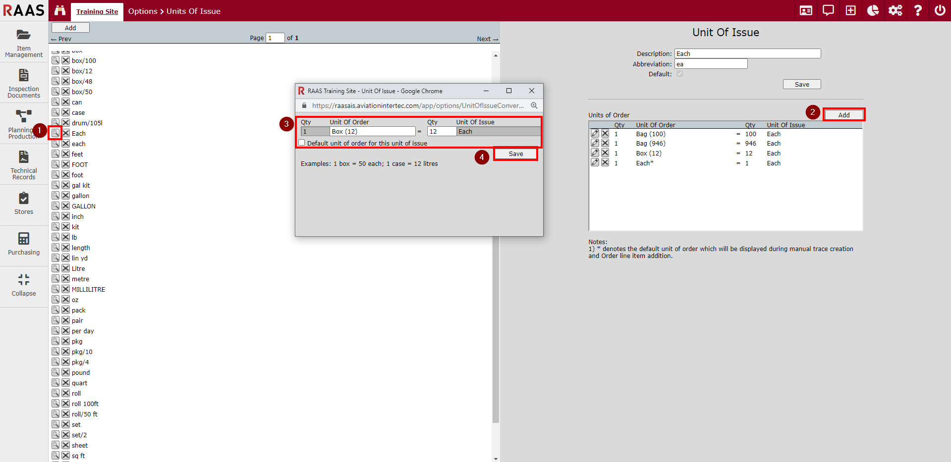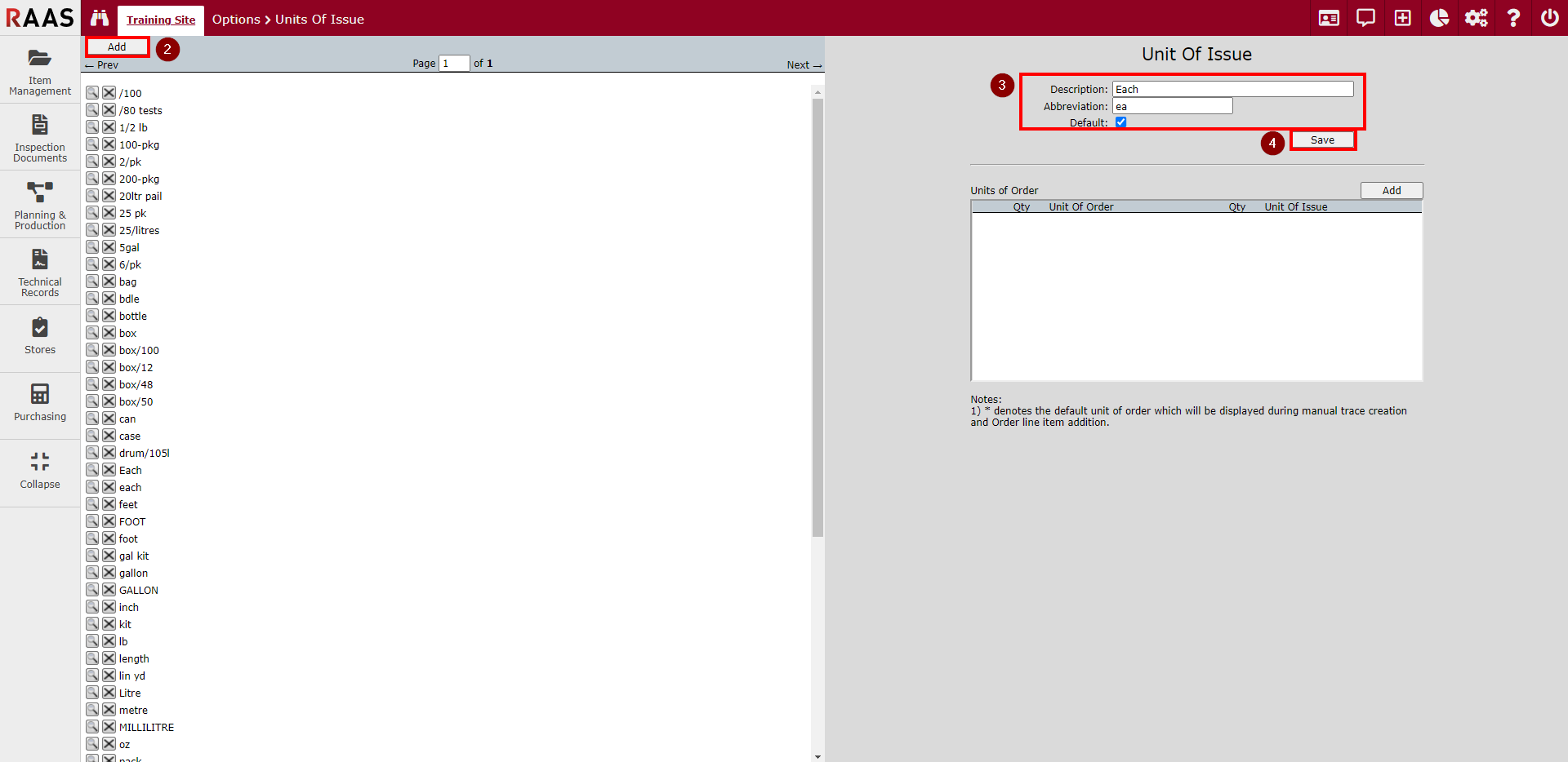 Figure 2: Adding a Unit of Issue