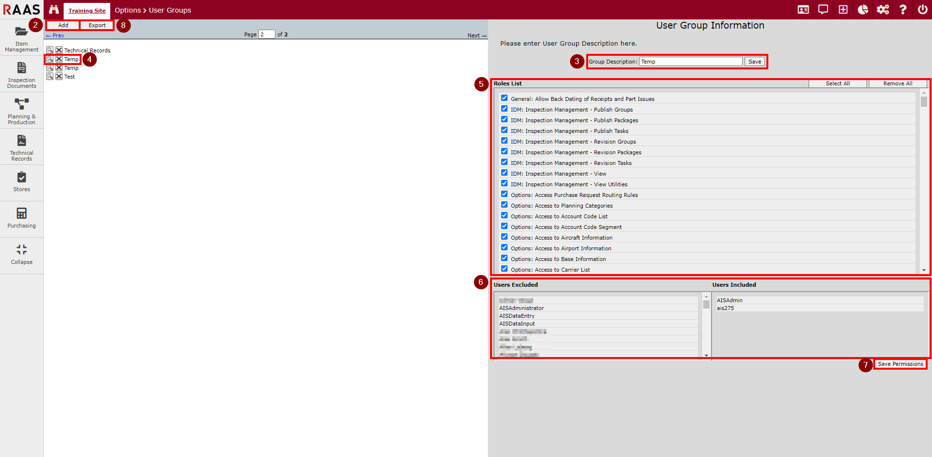 In RAAS, users require specific security roles in order to view, add, edit and delete records. For this reason, a user must be added to a User Group once a User Account has been created.