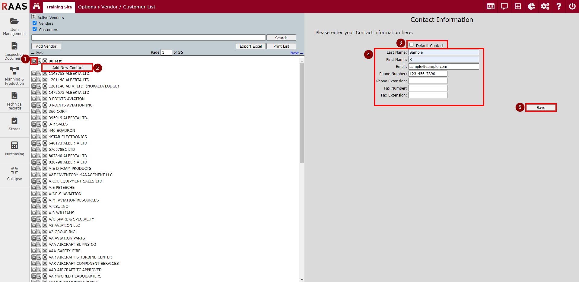 The Vendor / Customer List can be used to view and configure vendor and customer information.