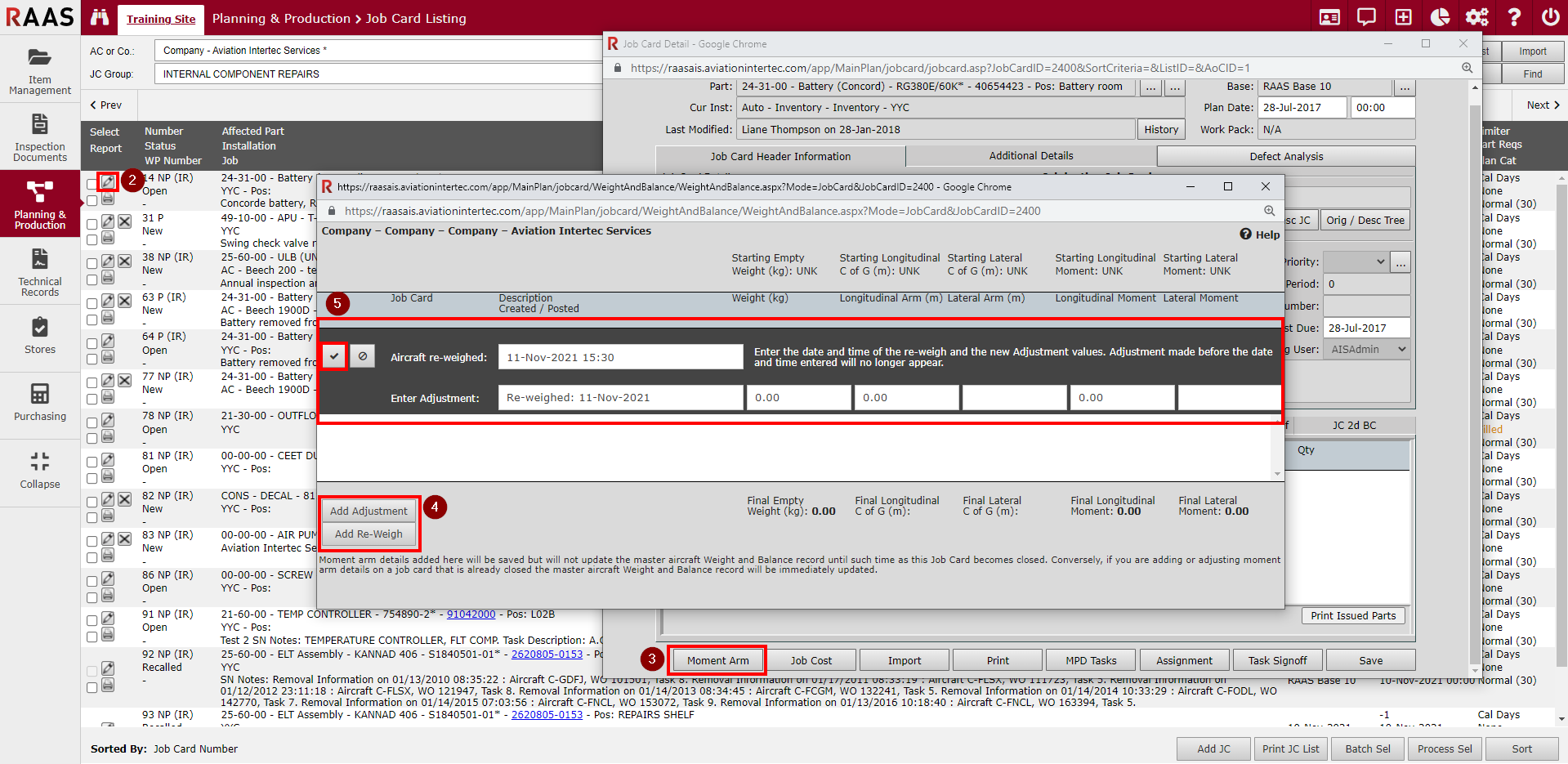 Figure 5: Job Card Weight and Balance Adjustments (Step 1)